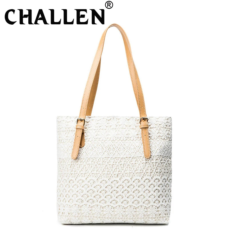 Bohemian Straw Bag Lace Top-Handle Large Capacity Rattan Beach Tote Bucket