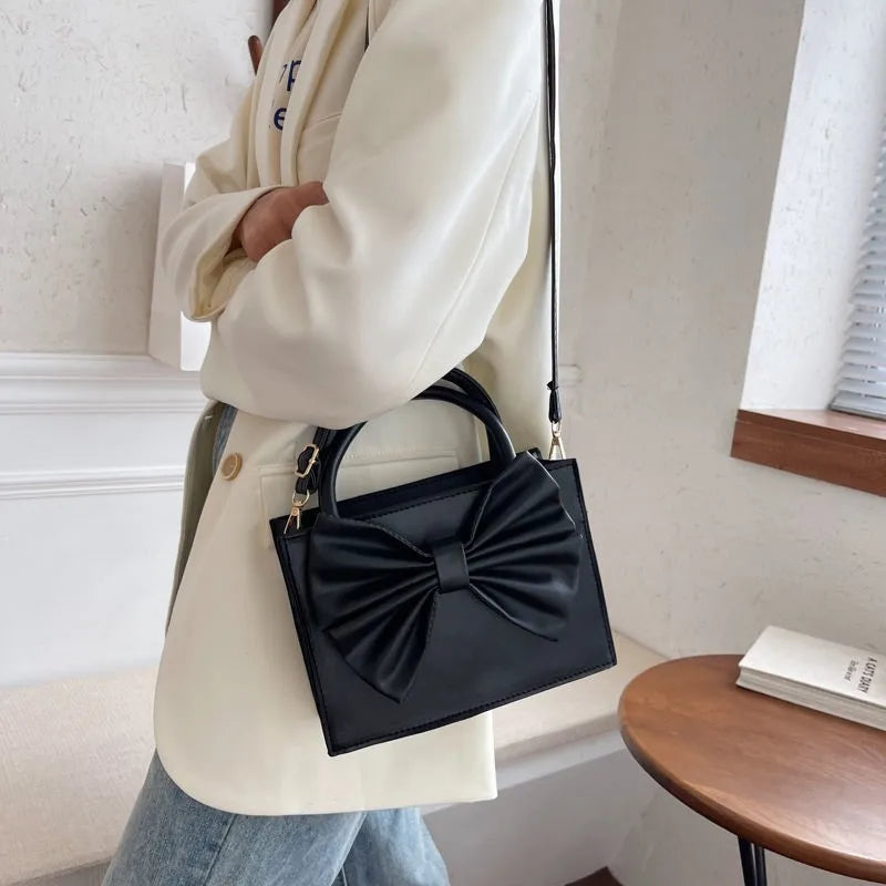 This lovely handbag features a bowknot design, perfect for women and girls. Made from high-quality leather, it's a stylish and practical accessory for everyday use.