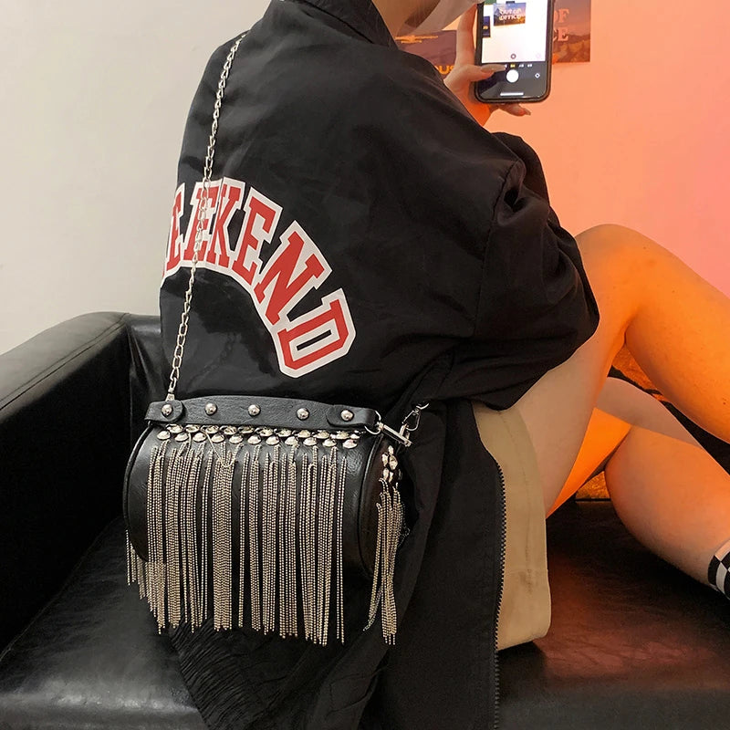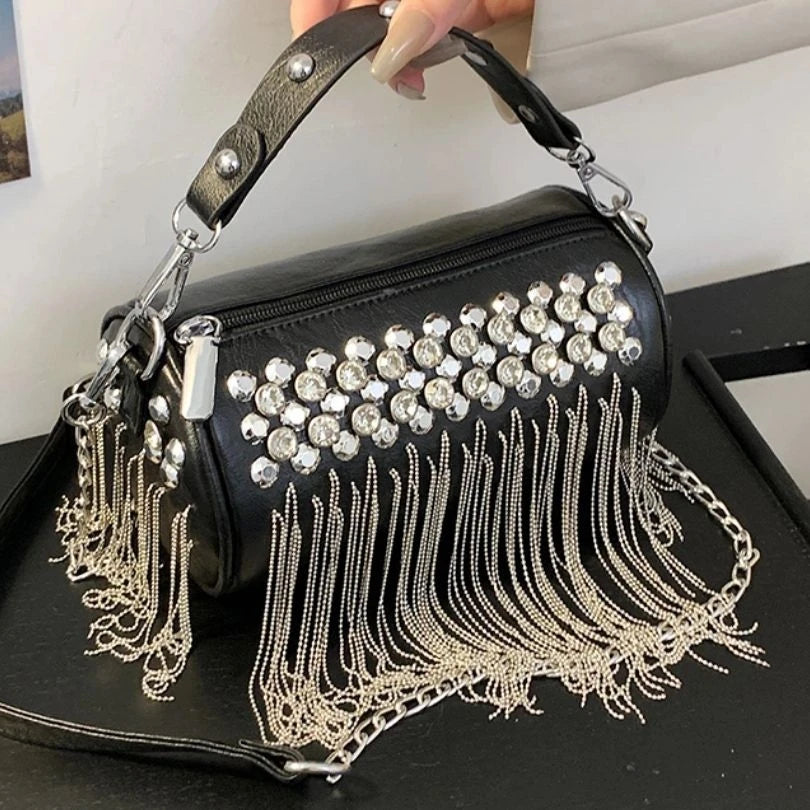 Bright Diamonds Women's Chain Shoulder Bag Fringe Leather Handbag