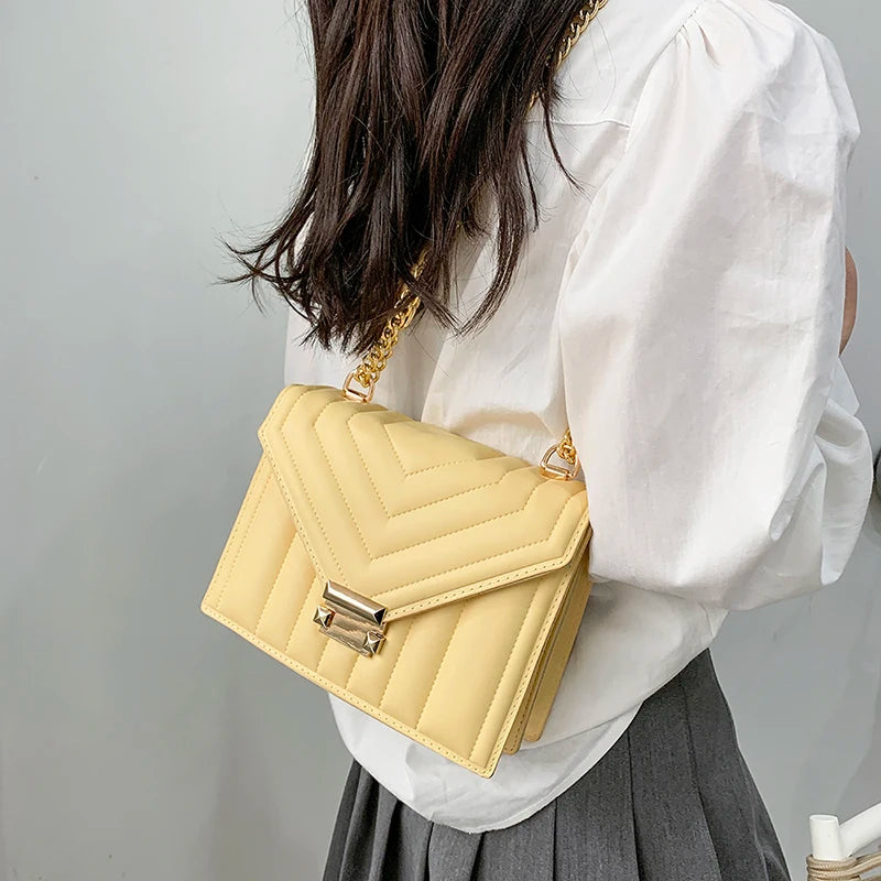This stylish Candy Chain Shoulder Crossbody Bag is perfect for women looking for a chic and functional accessory. The bag features a chain strap and multiple compartments.