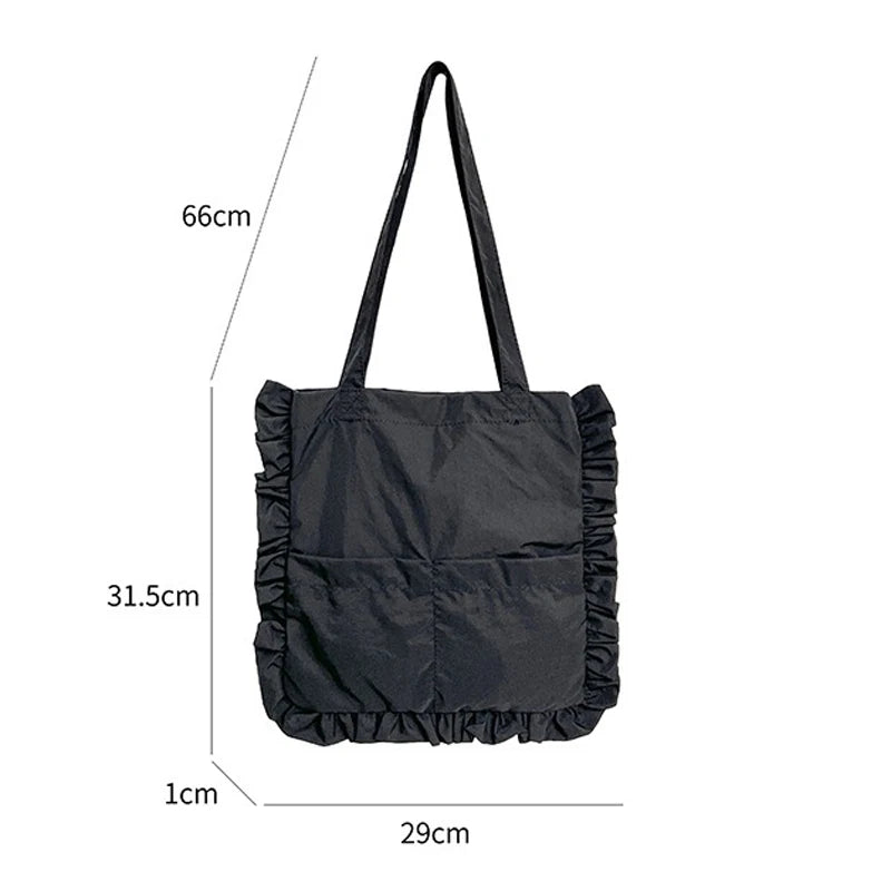 Canvas Ruffled Shoulder Bag Large Capacity Tote