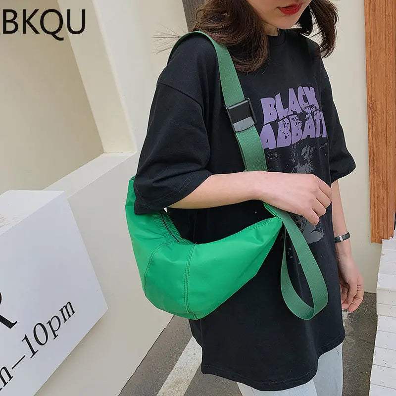 Canvas Shoulder Crossbody Bags Green Half Moon Handbags