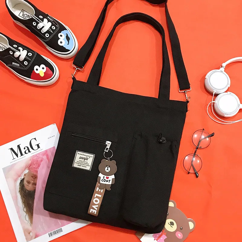 Canvas Shoulder Messenger Crossbody Book Bag Large Capacity Handbag