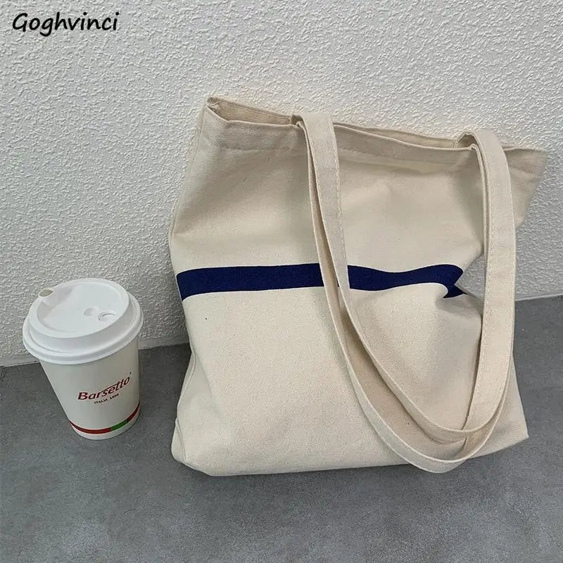 Canvas Striped Shoulder Bag Women Large Capacity Handbag