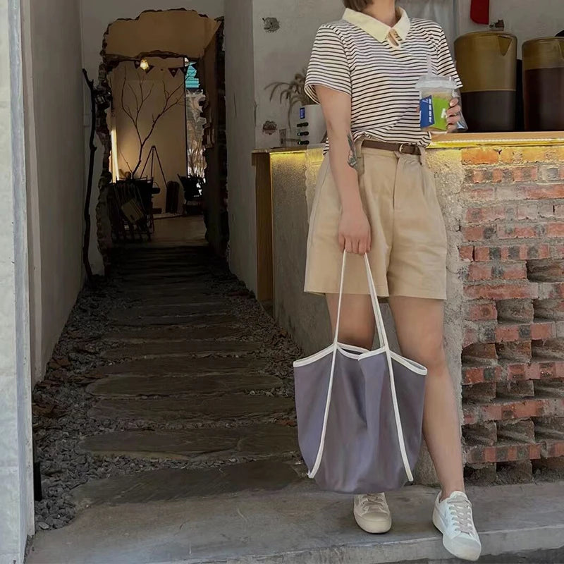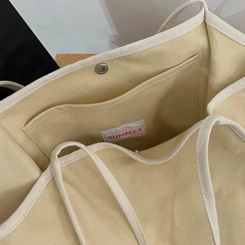 Canvas Tote Bag for Women Magnetic Buckle Commuter Shoulder Bag