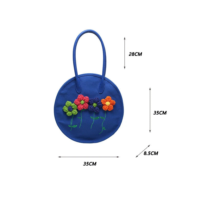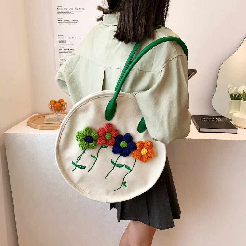 Canvas Tote Bag Women Summer Shoulder Bags Round Handbags Big Shopper Totes