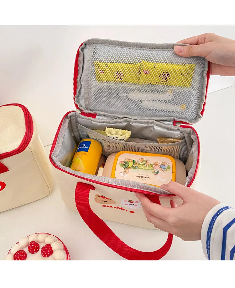 Stay warm and stylish with this adorable bear embroidery lunch box bag. Perfect for storing your daily essentials and bento boxes. Ideal for moms on the go!