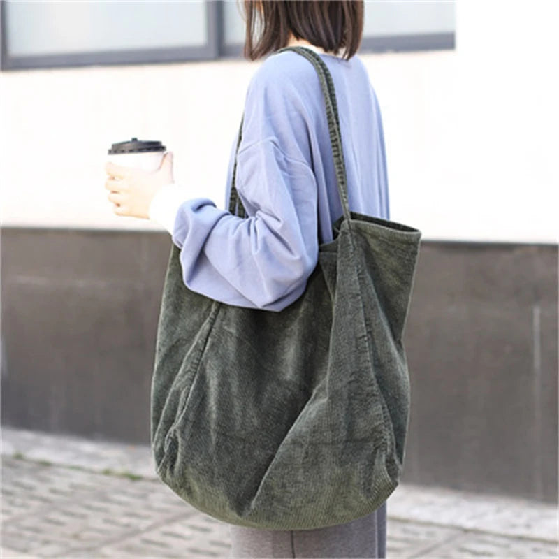 This stylish corduroy canvas handbag is perfect for shopping with its large capacity. The retro literary design adds a touch of elegance to your outfit.