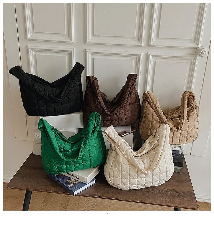 Casual Padded Big Tote for Women Pleated Large Handbag