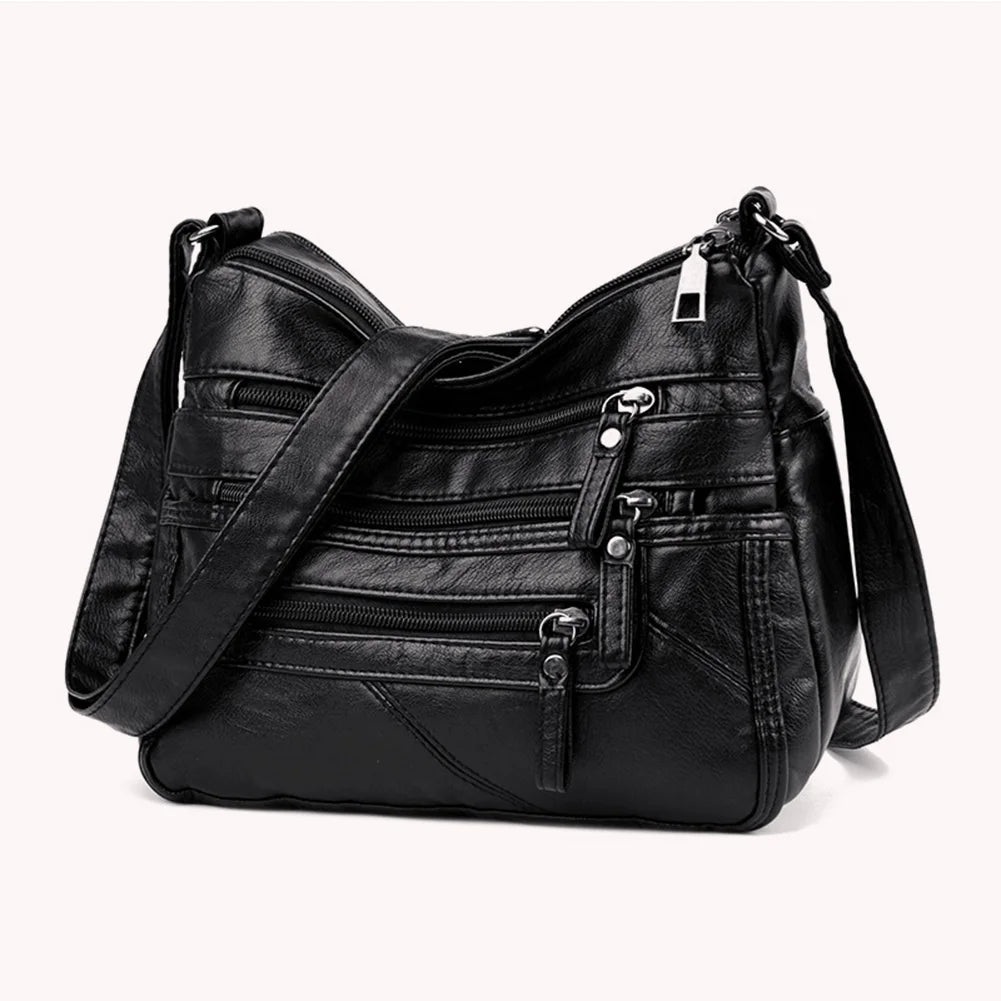 Casual Women PU Crossbody Bag Large Capacity Multi-zipper Handbag