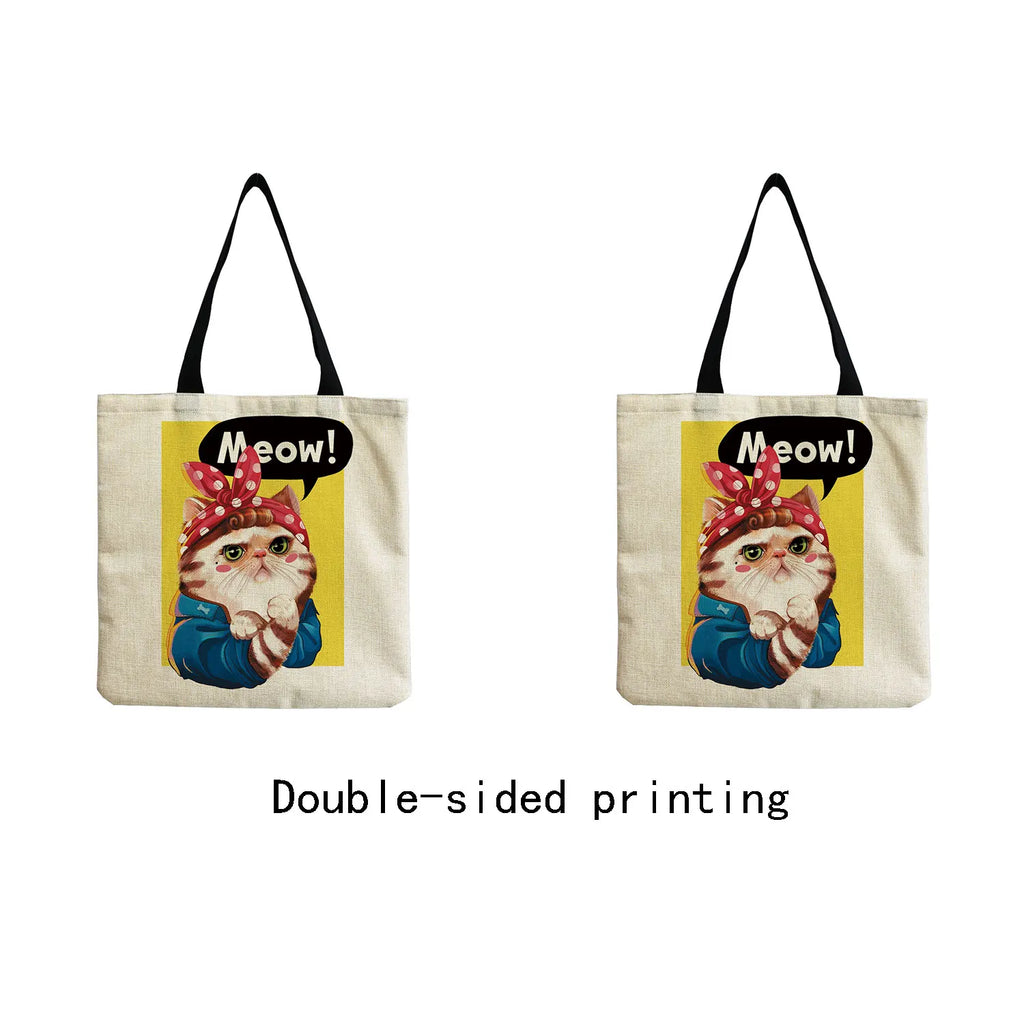 Cat Print Tote Bag Eco Friendly Women Shoulder Bag