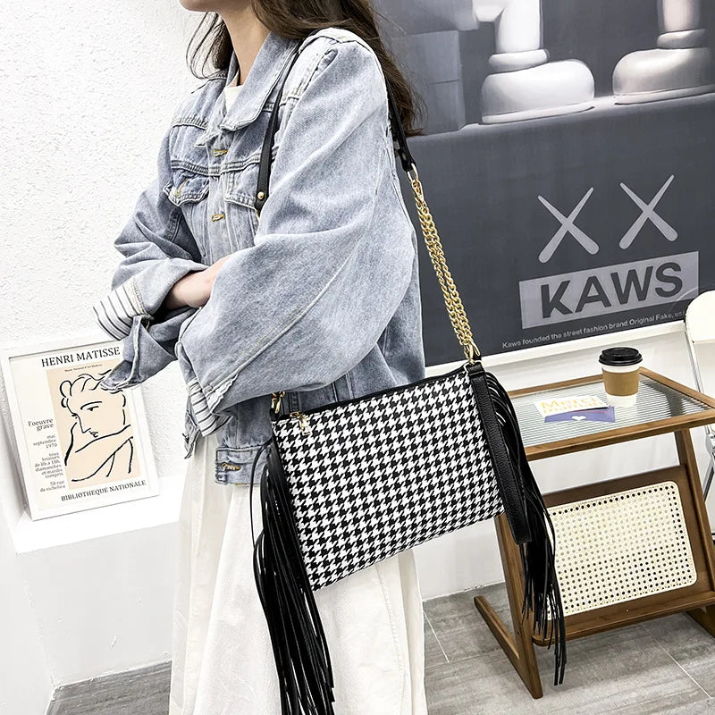 Celela Tassel Shoulder Bag Leopard Print Purse Clutch