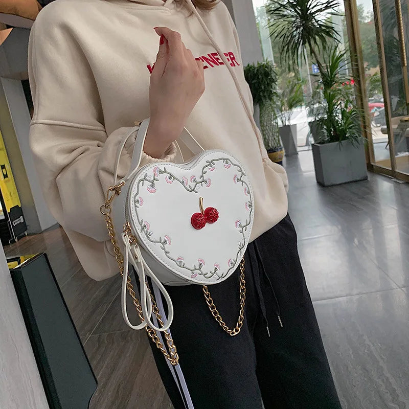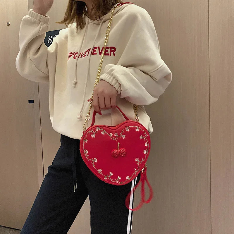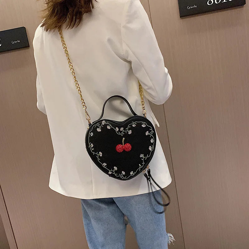 Cherry Heart Crossbody Bag Embroidered Shoulder Clutch