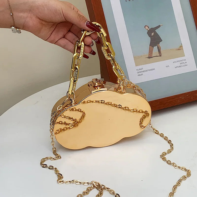 This elegant cloud shape plastic box chain purse is perfect for women. It can be used as a crossbody bag, party clutch, wedding or evening bag.