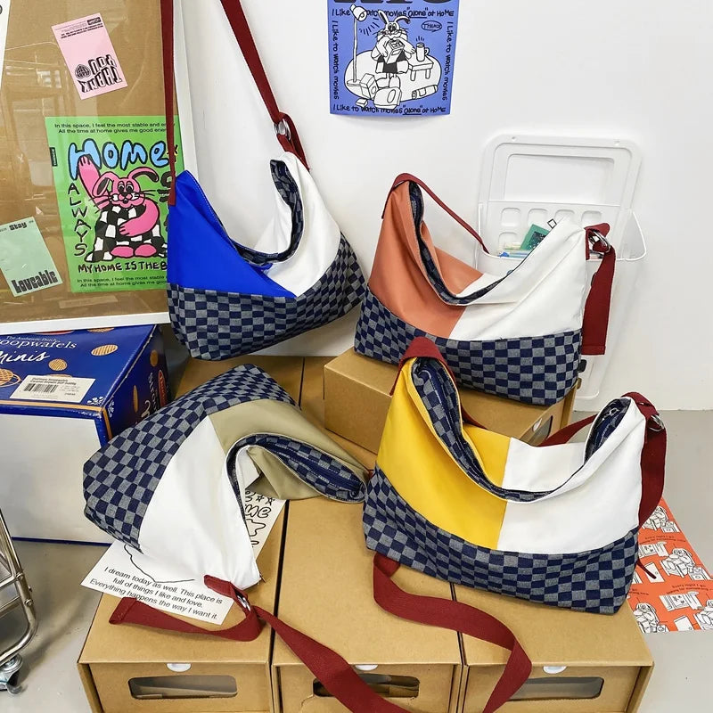 Contrasting Colors Ladies Shoulder Bags High Nylon Checkerboard Stitching