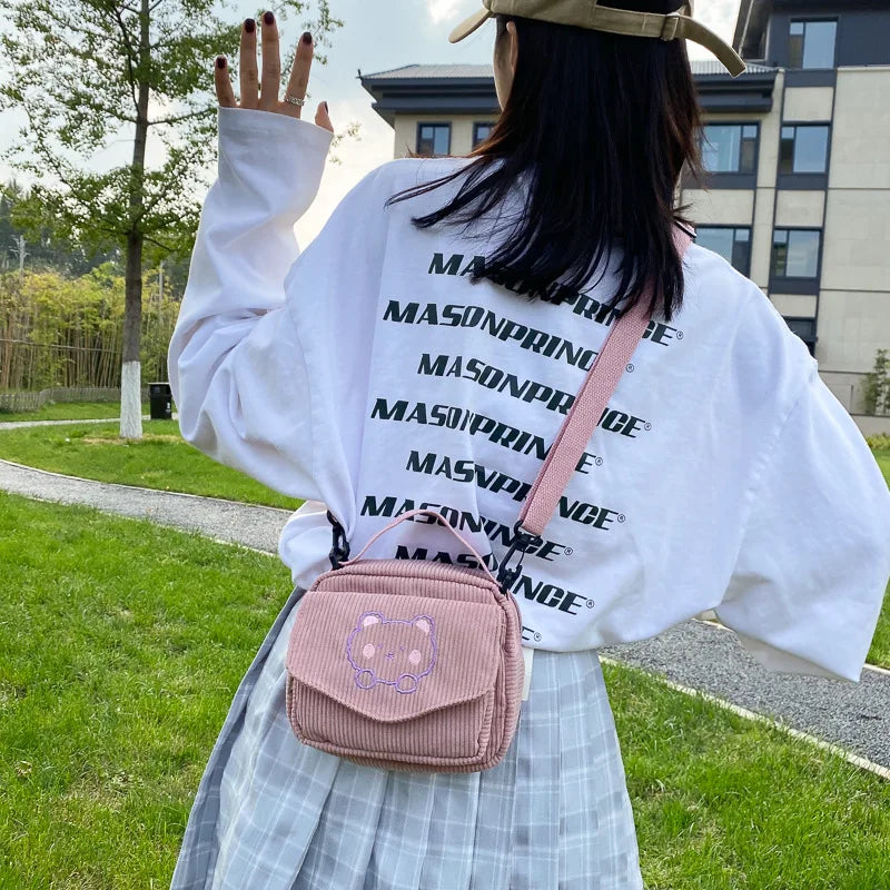 This corduroy shoulder bag is perfect for a casual and preppy style. It is ideal for students and travel purposes, offering a compact design for your essentials.
