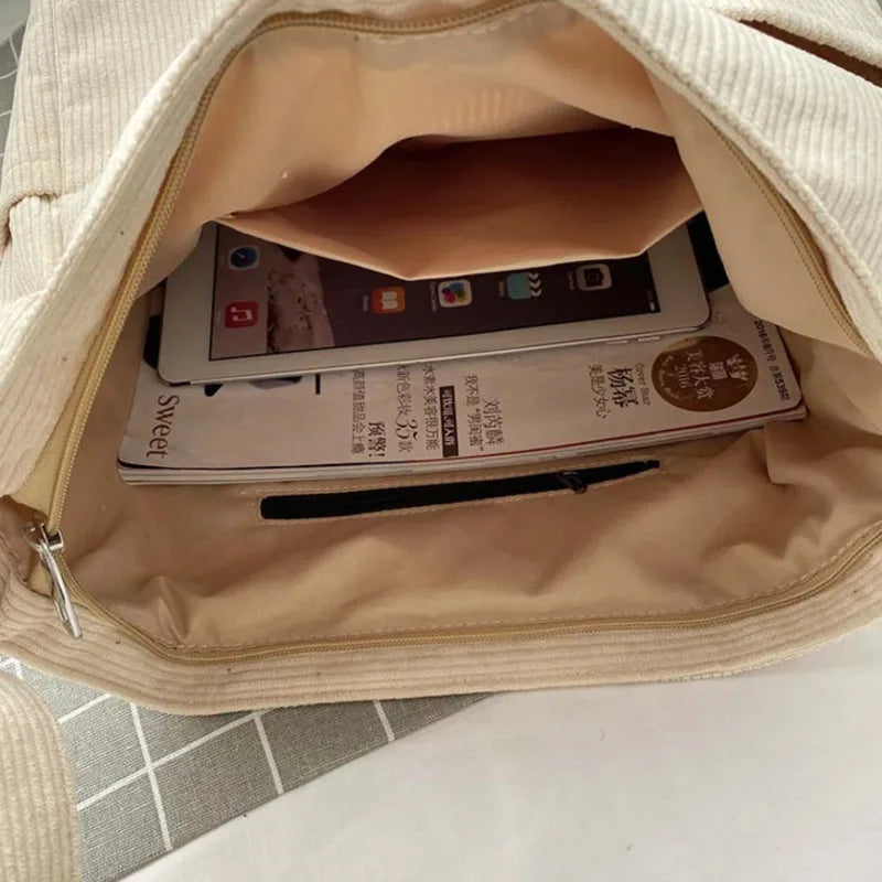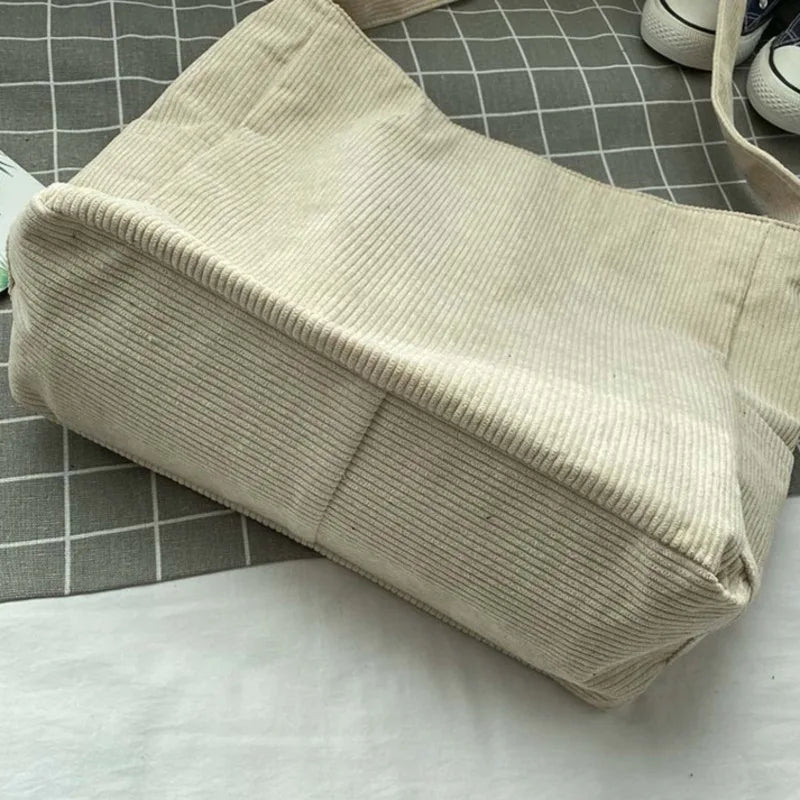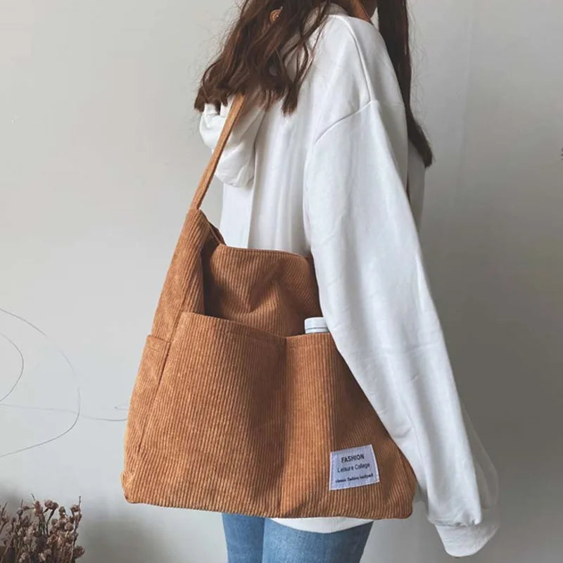 Stay stylish on campus or on-the-go with this corduroy shoulder bag. It offers a large capacity for all your essentials.