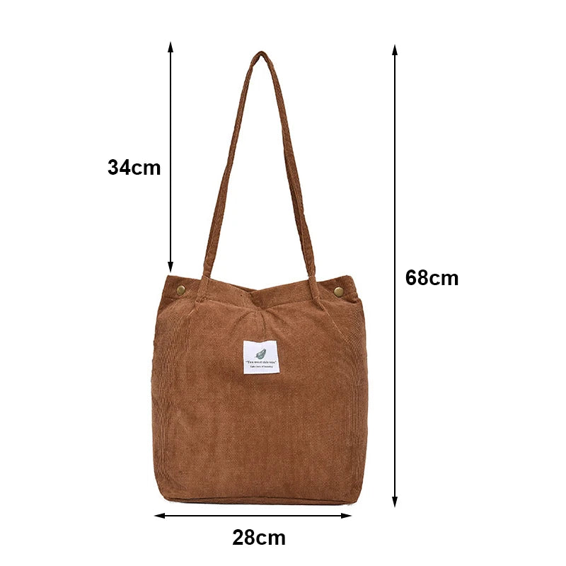 Stay stylish and practical with this corduroy shoulder bag made from cotton cloth. Perfect for shopping or running errands, this large handbag offers a solid and durable design.