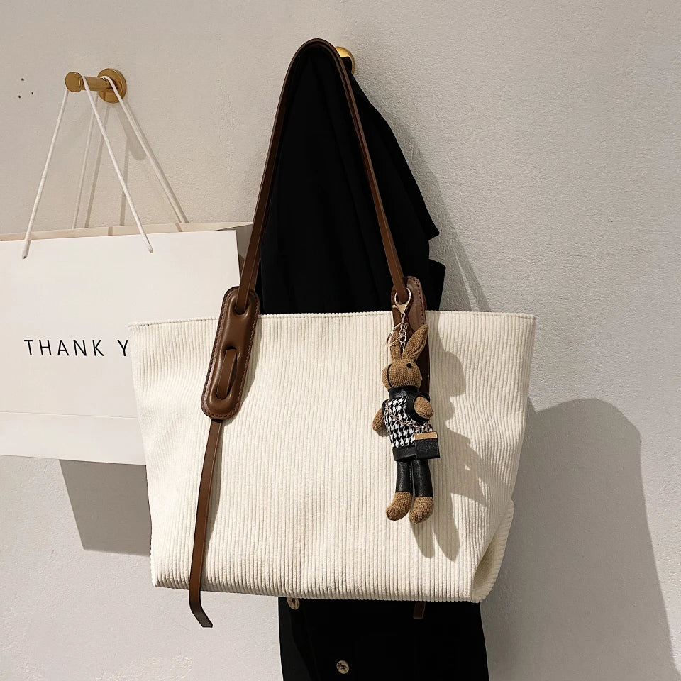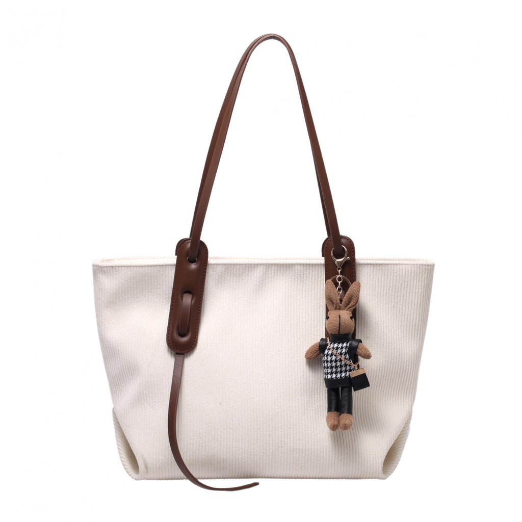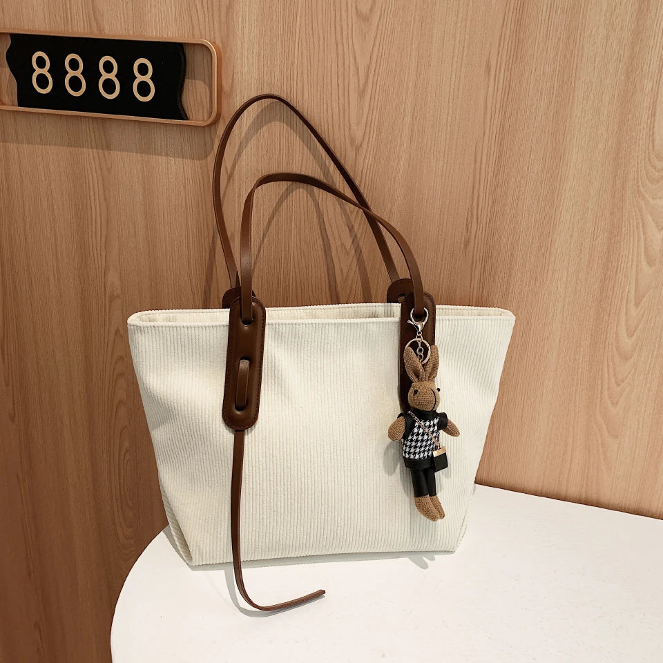 Corduroy Tote Shoulder Bag Beige High Classic Handbag
