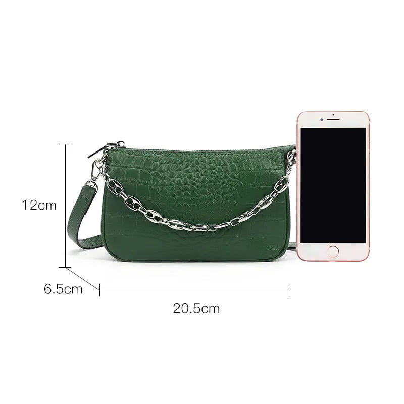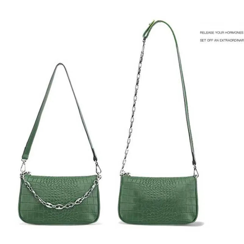 This stylish and chic crossbody bag features a crocodile pattern design. It is perfect for everyday use and can be worn as a handbag or shoulder bag.