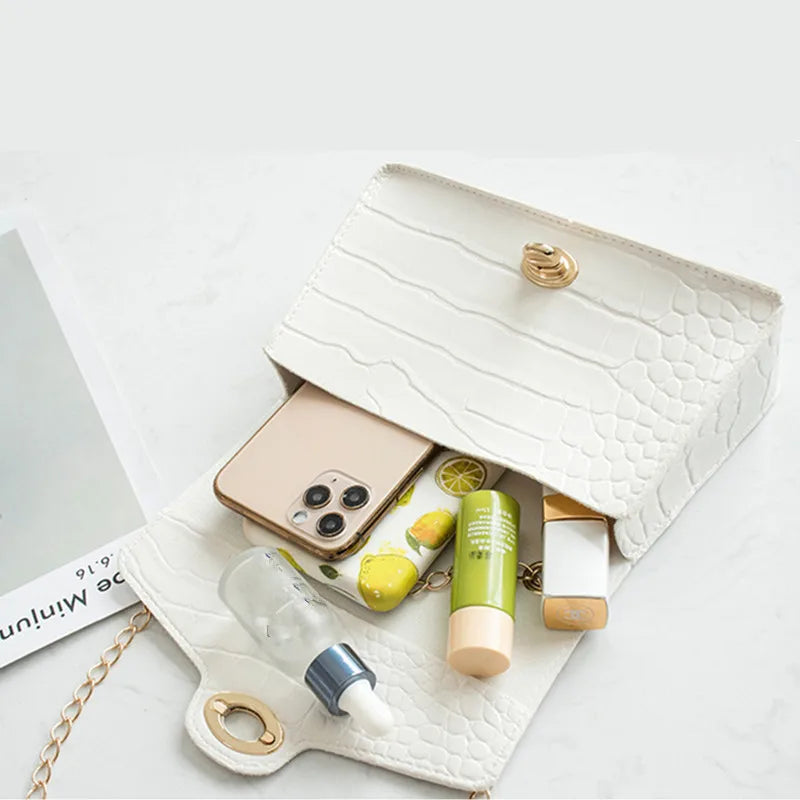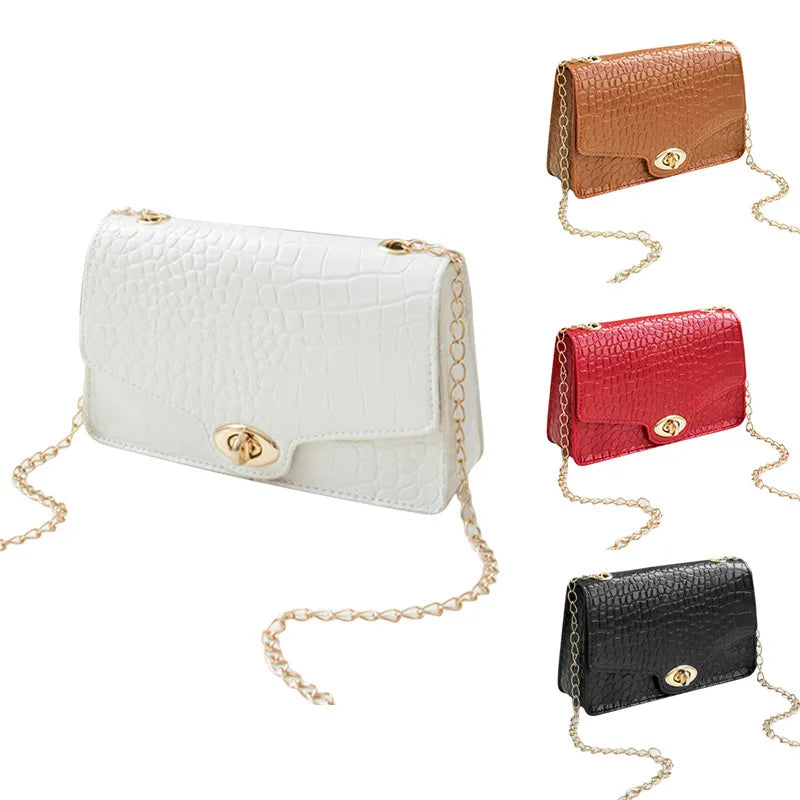 Crocodile Pattern Shoulder Bag Women Crossbody Handbag Lock Small Square