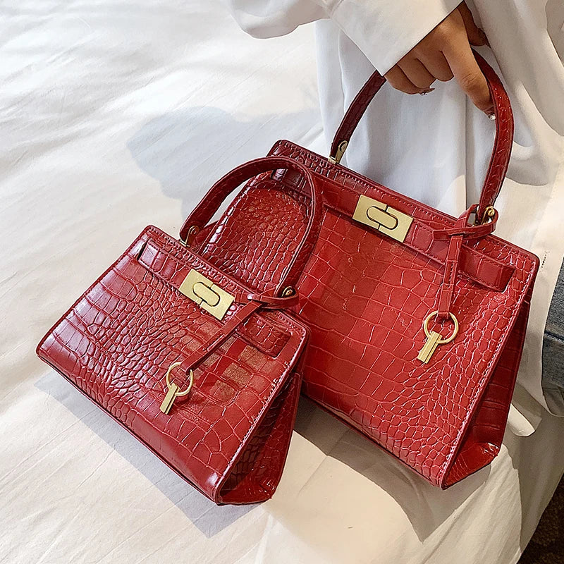 Crocodile Pattern Square Tote Bag Women's Handbag