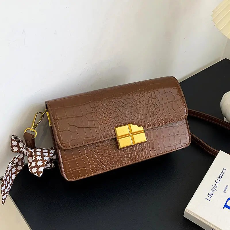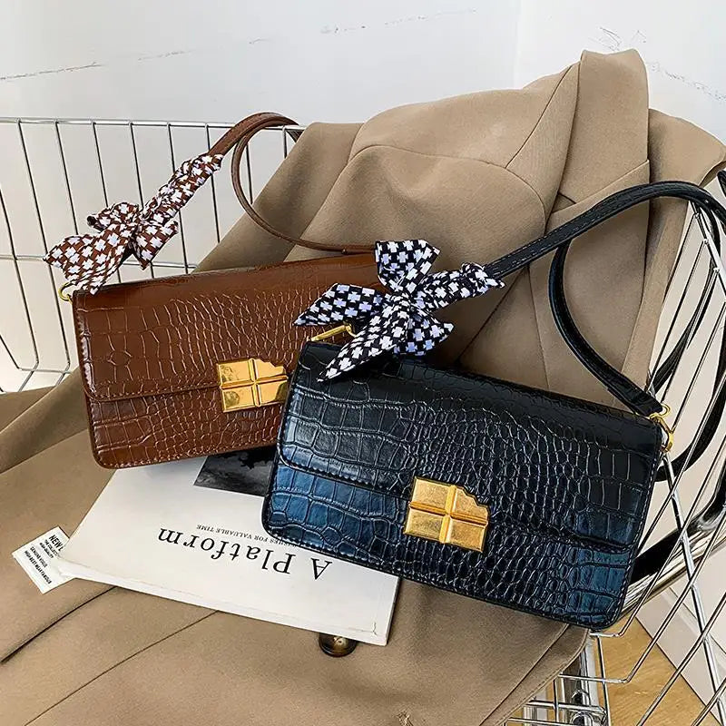 This stylish handbag features a crocodile pattern design, making it perfect for everyday use. It can be carried as a shoulder bag or crossbody bag.