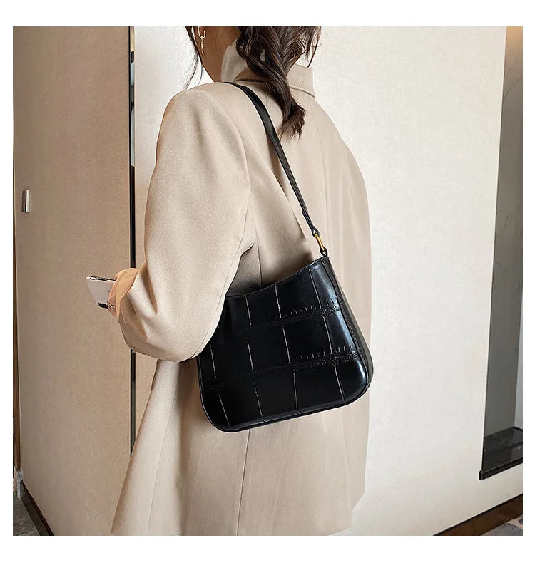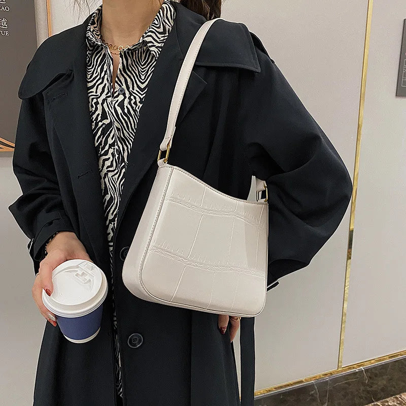 Stay stylish with this crocodile pattern shoulder bag that combines retro charm with modern functionality. Perfect for carrying essentials in a compact size.