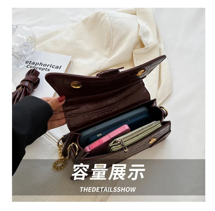 Crocodile Pattern Women's Shoulder Bag with Chain