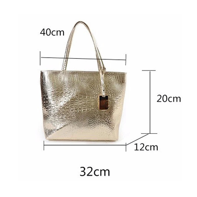 Crocodile Shoulder Bag PU Leather Female Tote Silver Handbag