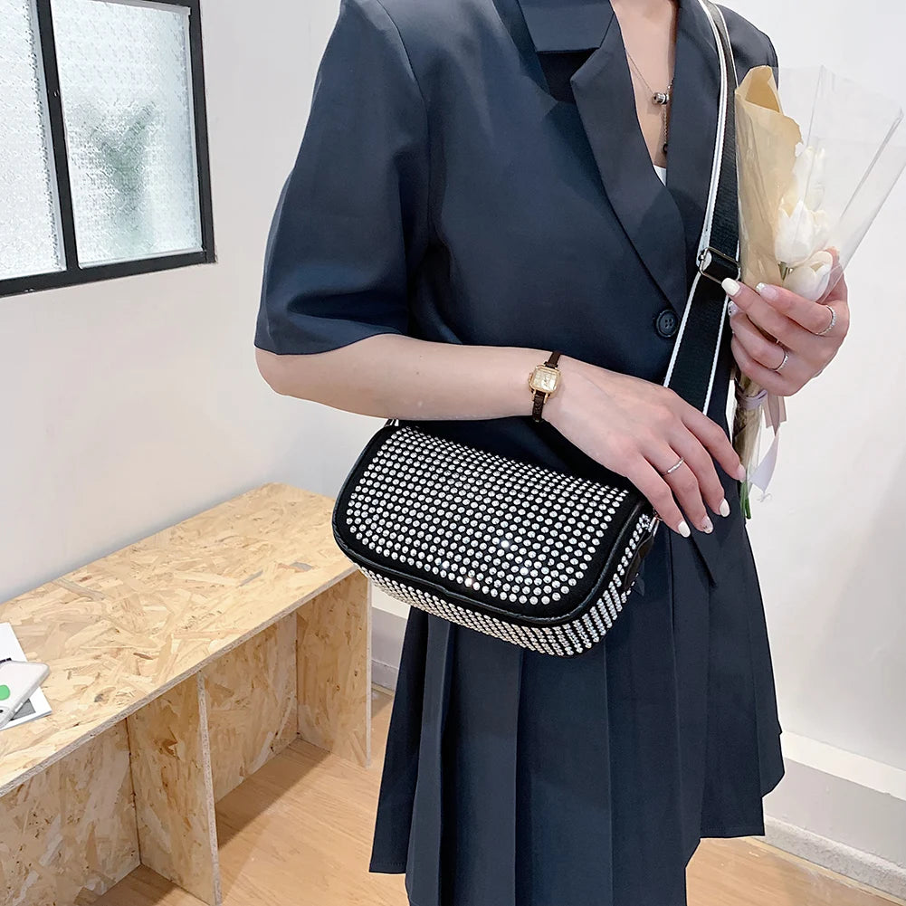 Elegant and fashionable shoulder bag adorned with sparkling diamond rhinestones. Perfect for parties or shopping trips.