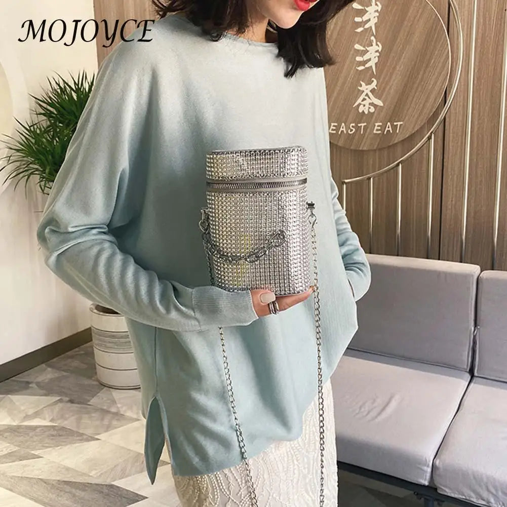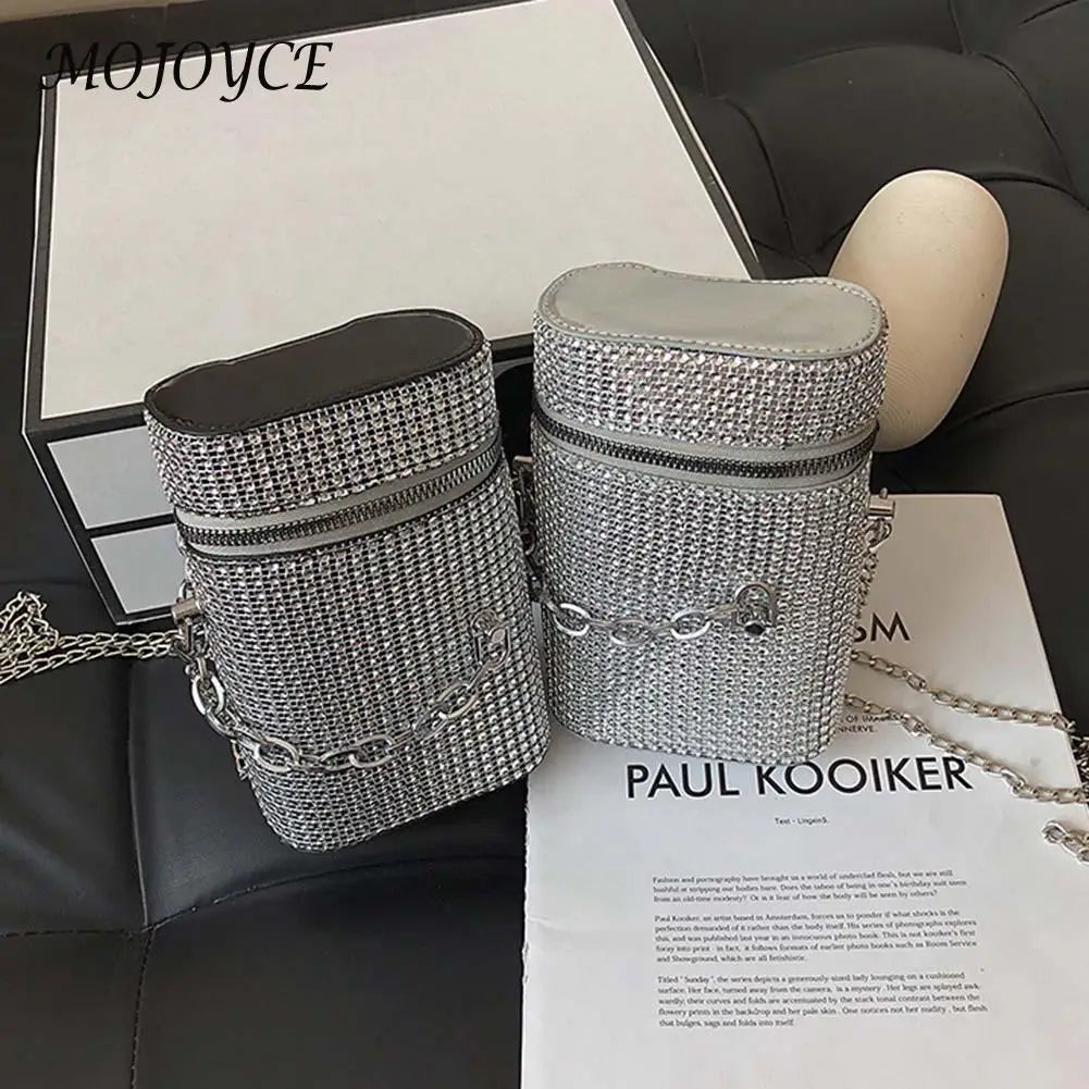 Diamond Shoulder Bag Women Leather Cylinder Bucket Handbag