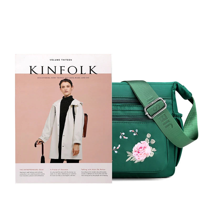 Embroidered Nylon Crossbody Bag for Women