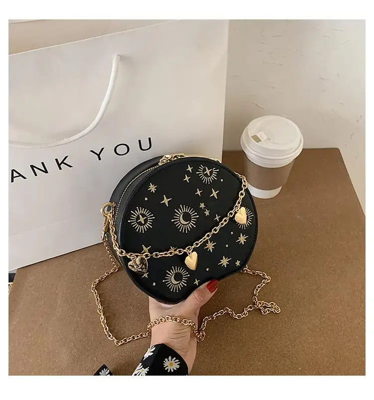 Embroidered Starry Sky Round Crossbody Bag for Women