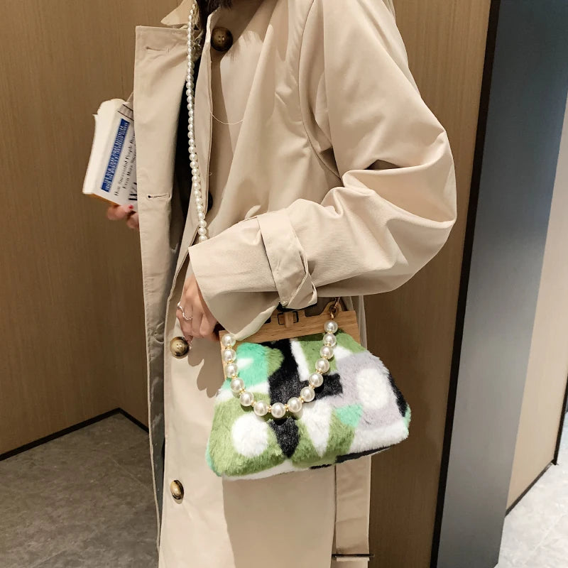 Faux Fur Crossbody Bag Small Flap Shoulder Messenger Bag Women