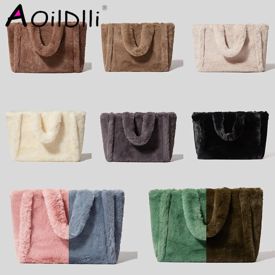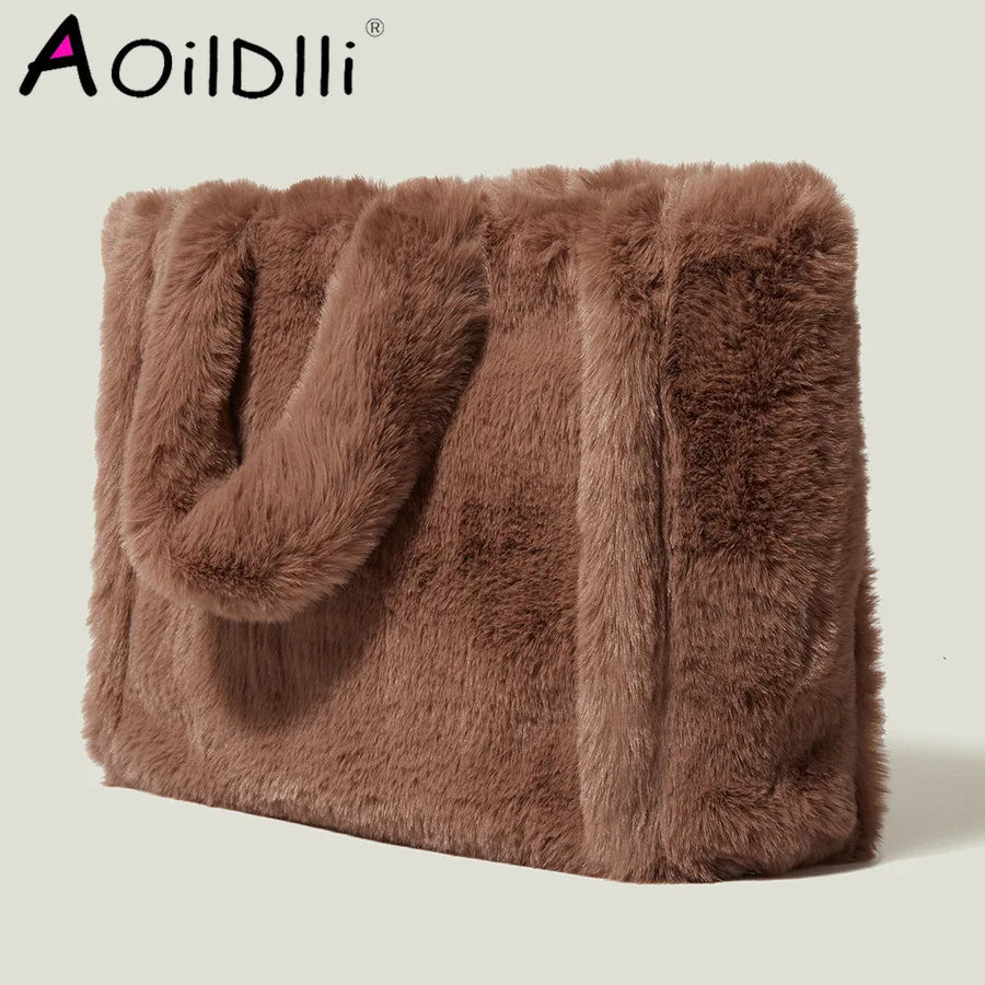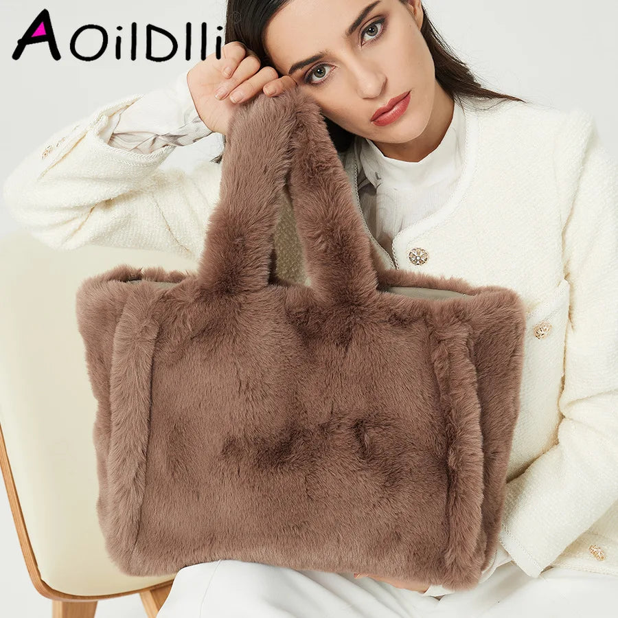 Faux Fur Large Tote Bag Teddy Women Handbags Soft Fluffy Plush Lady Handbags