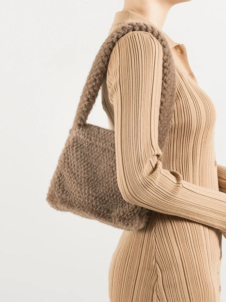 Faux Fur Shoulder Bag for Women Hobo Purse Top Handle Handbag