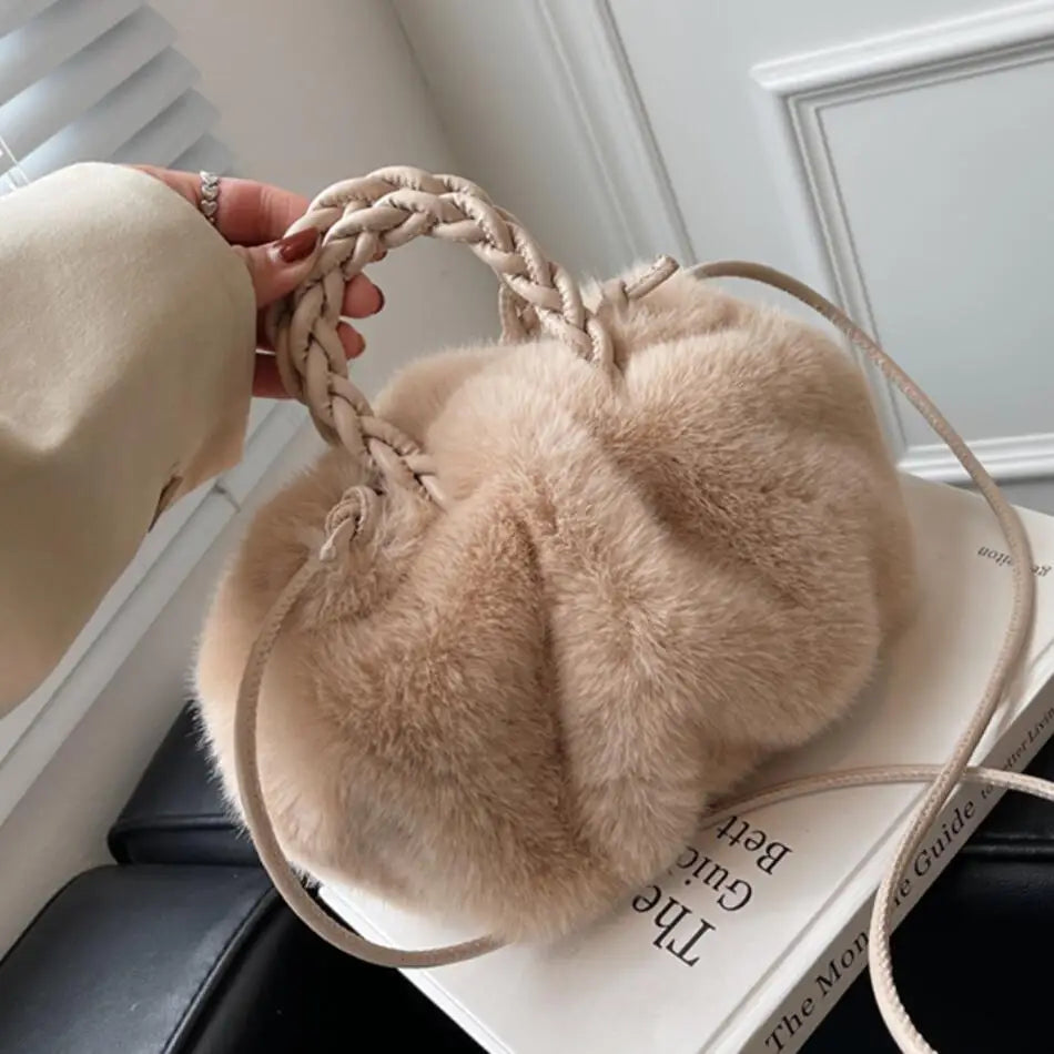 Stay cozy and stylish this winter with this pleated shoulder messenger bag. Made of soft faux fur material with a woven handle, this small tote is perfect for carrying your essentials in style.
