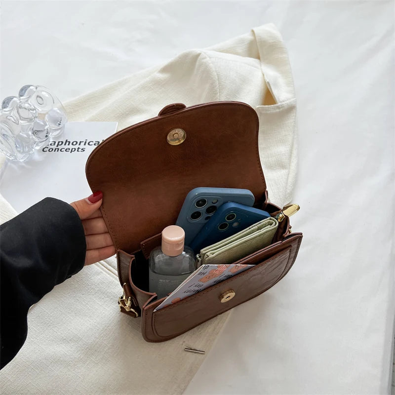 Stay stylish with this solid flap square crossbody bag made of PU leather featuring a wide strap. Perfect for women looking for a small, chic shoulder bag.