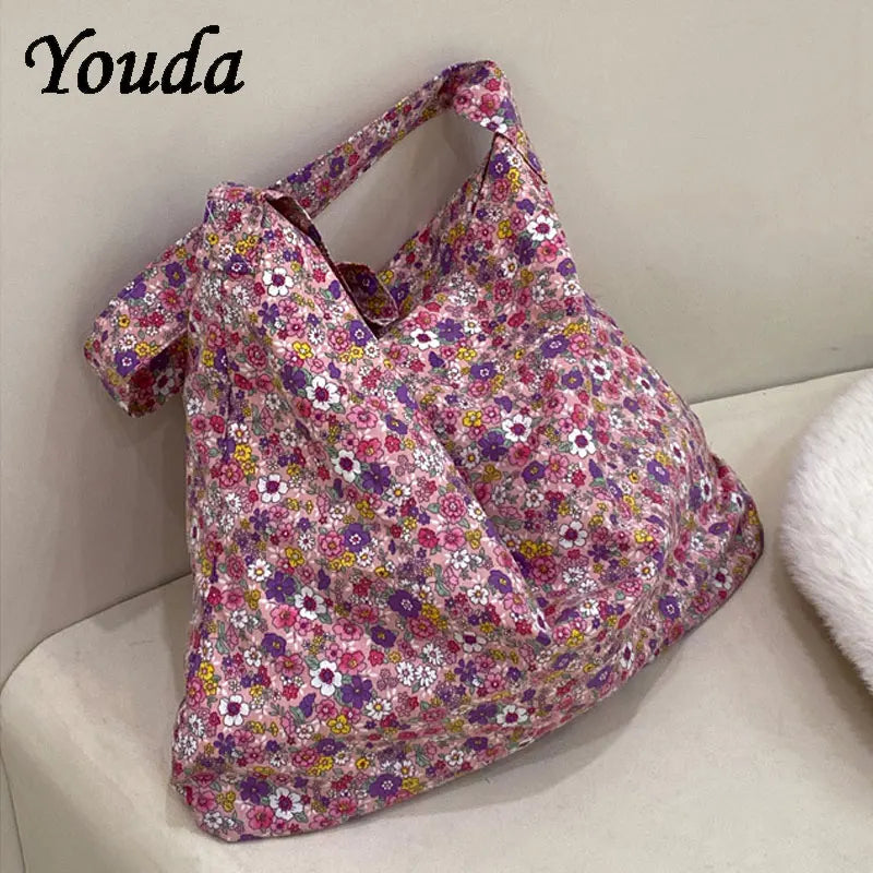 This floral canvas shoulder bag is perfect for a retro and literary look. Ideal for shopping or everyday use, this bag is both stylish and practical.