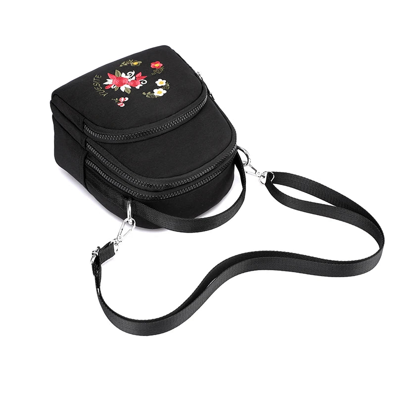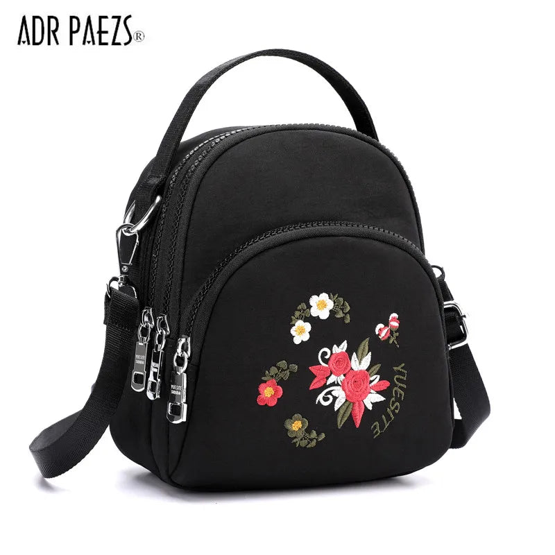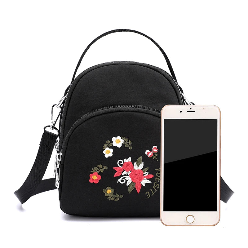 Floral Embroidery Backpack Small Nylon Handbag for Girls Women