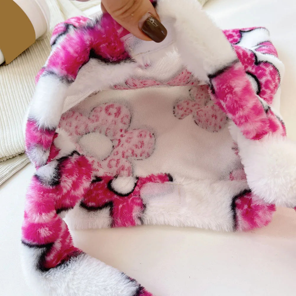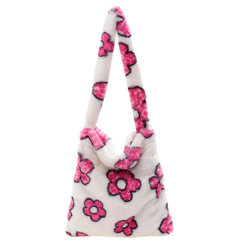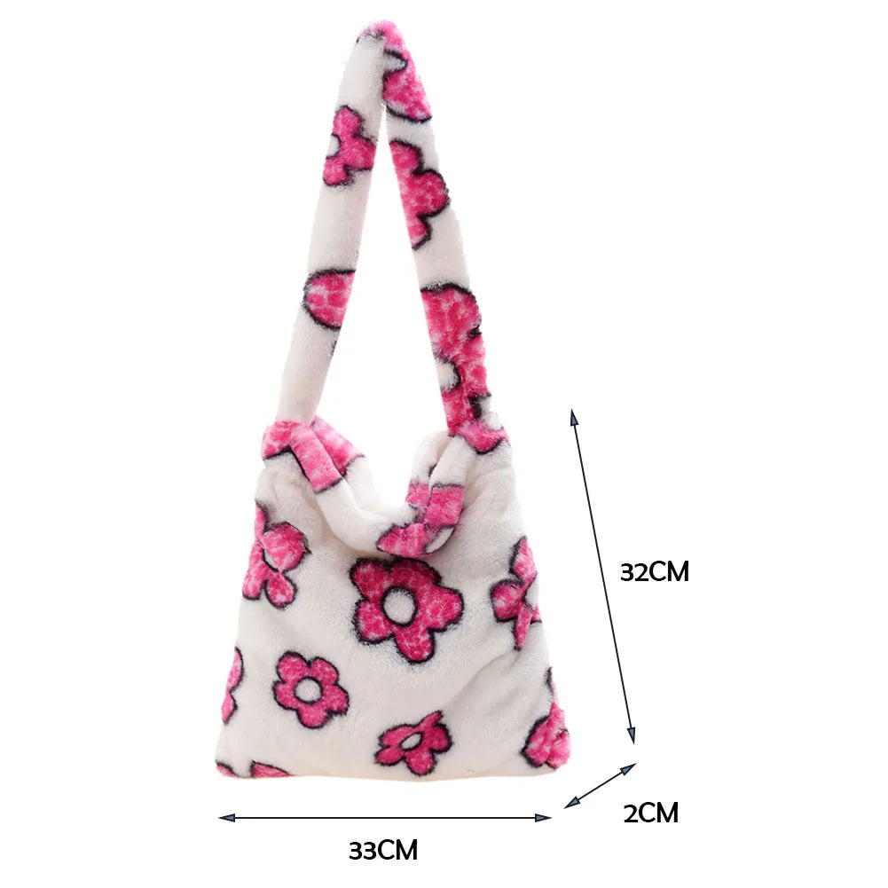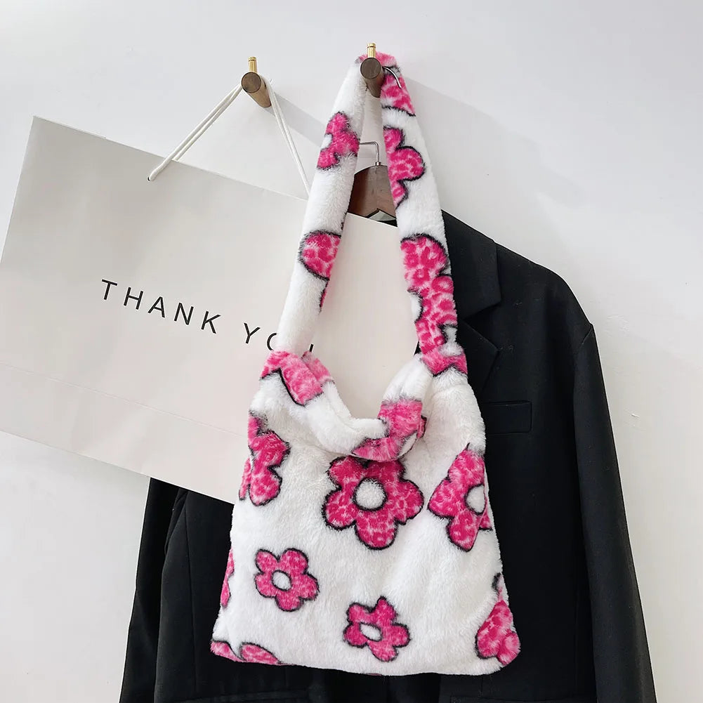 Floral Print Plush Shoulder Bag Winter Large Handbag Purse