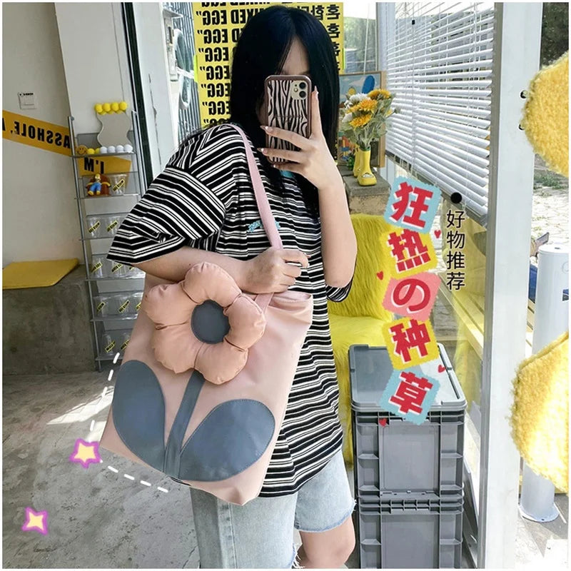 Floral Style Large Women Shoulder Bags Nylon Tote Handbags