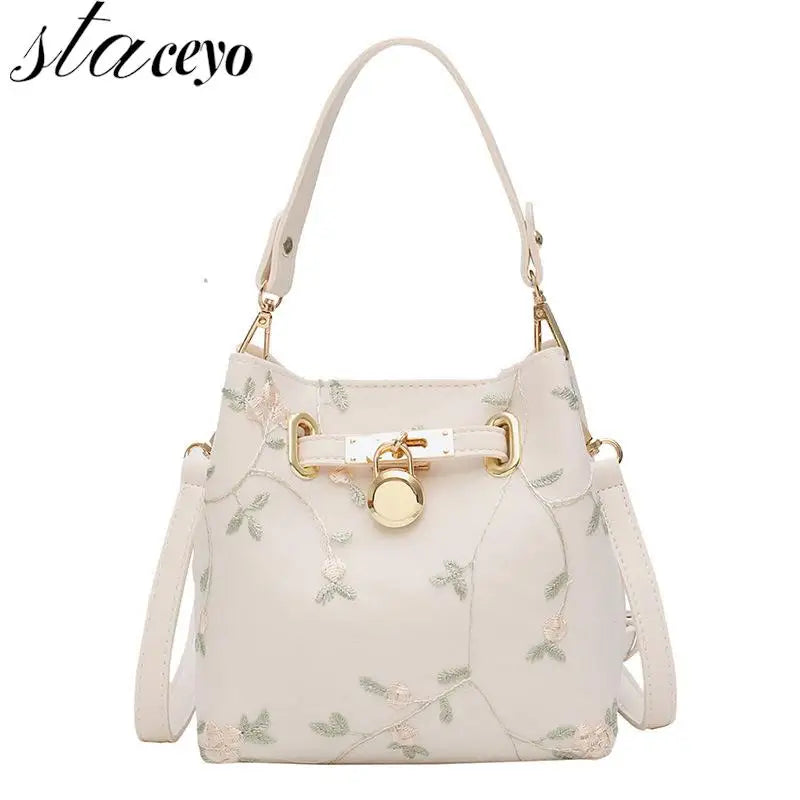 Flowers Embroidery Bucket Crossbody Bag for Women