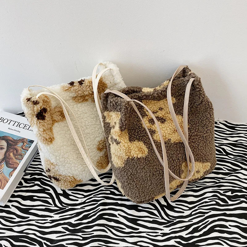 Stay cozy and stylish with this sweet bear plush tote bag. Perfect for winter, it's soft and warm with a fluffy design. Ideal for women who want a large shopper bag with a touch of cuteness.