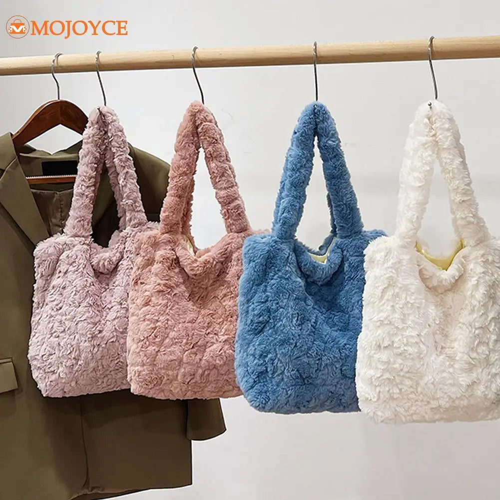 Fluffy Tote Bag Pink Faux Fur Hobo Bag Korea INS Handbag Purses Clutch