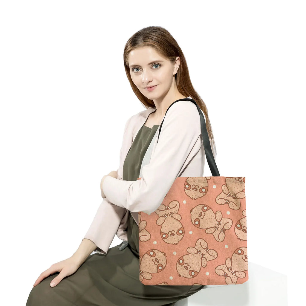 Foldable Eco Friendly Shopping Bag Sloth Print Handbag