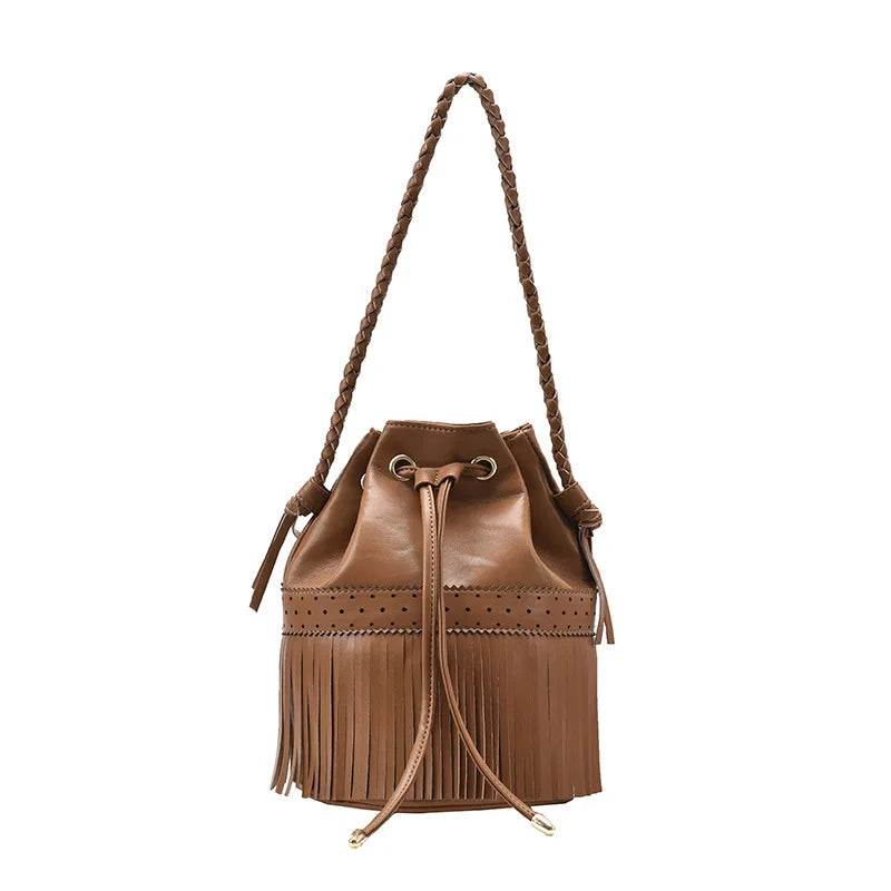 Fringe Women's Shoulder Bag PU Leather Crossbody Bucket Handbag
