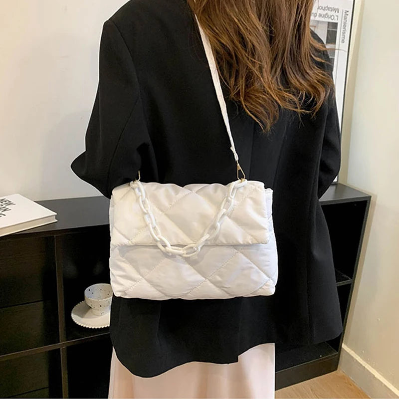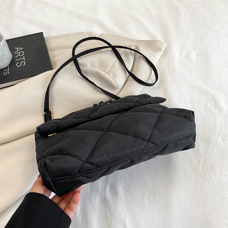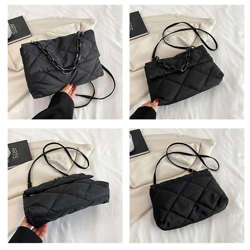 Stay fashionable and organized with this winter quilted padded messenger bag. Perfect for everyday use or special occasions.