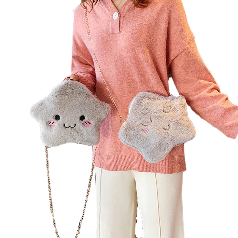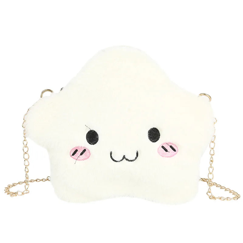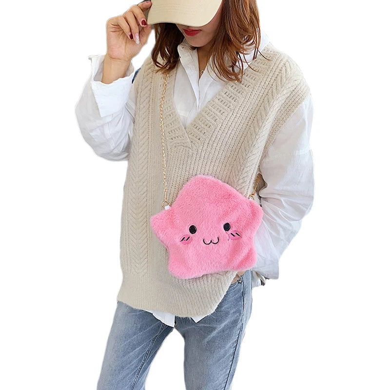 Girls Cartoon Crossbody Bag Plush Shoulder Purse with Metal Chain Strap